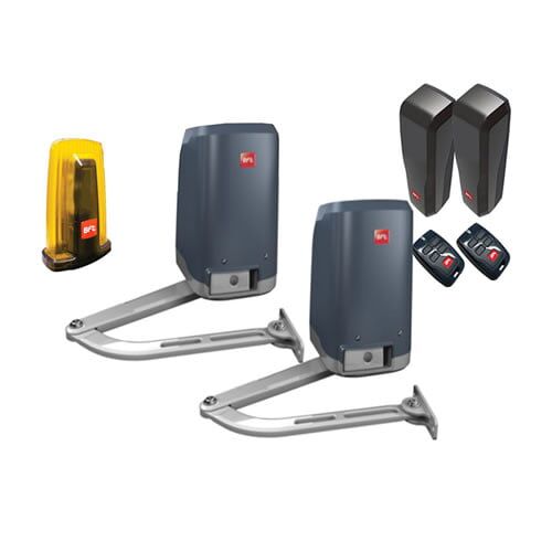 Kit-ul este alacatuit 2 motoare electromecanice, 1 unitate de control integrata, 1 set fotocelule Desme, 1 lampa semnalizare optica Radius, 2 telecomenzi Mitto 2 cu 2 canale, 1 cheie de blocare/deblocare manuala si accesorii montaj.